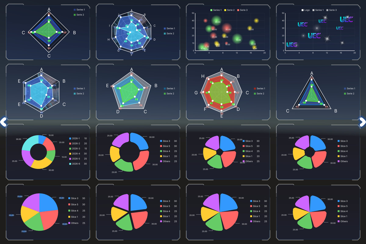 - 5 chart types + demo scenes