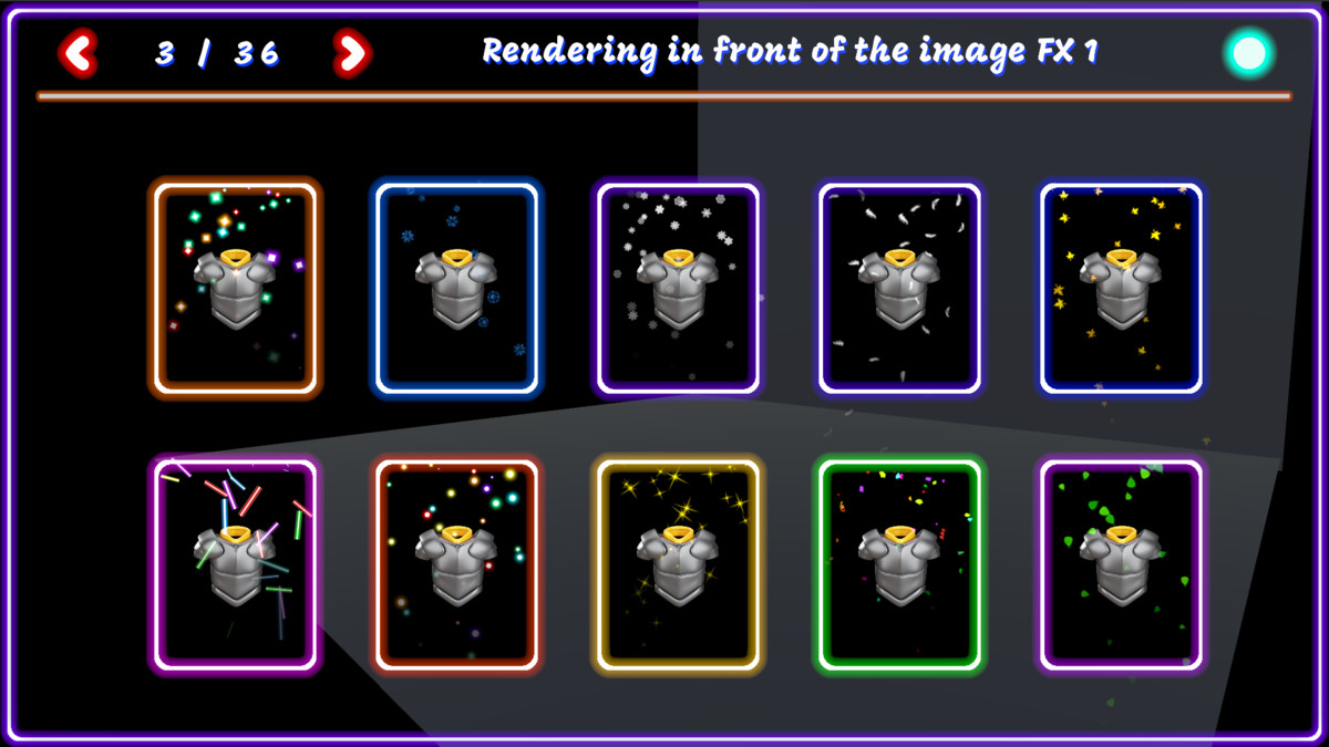 UI FX - Particle System is designed for reduced dependency and optimized effect creation, lowering usage complexity without compromising quality. All effects are built using Unity's Particle System and include multiple examples demonstrating how to manage rendering order in UI.